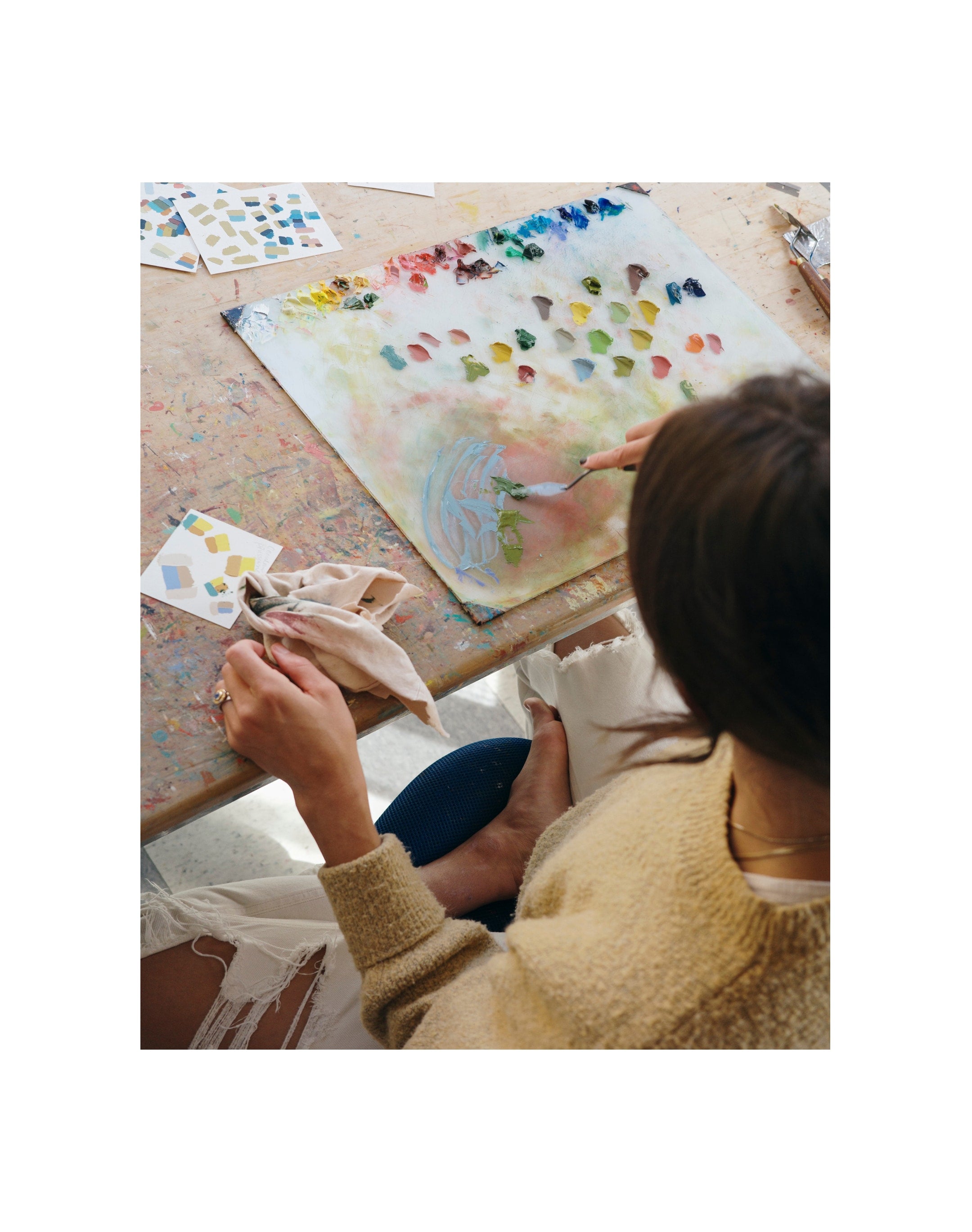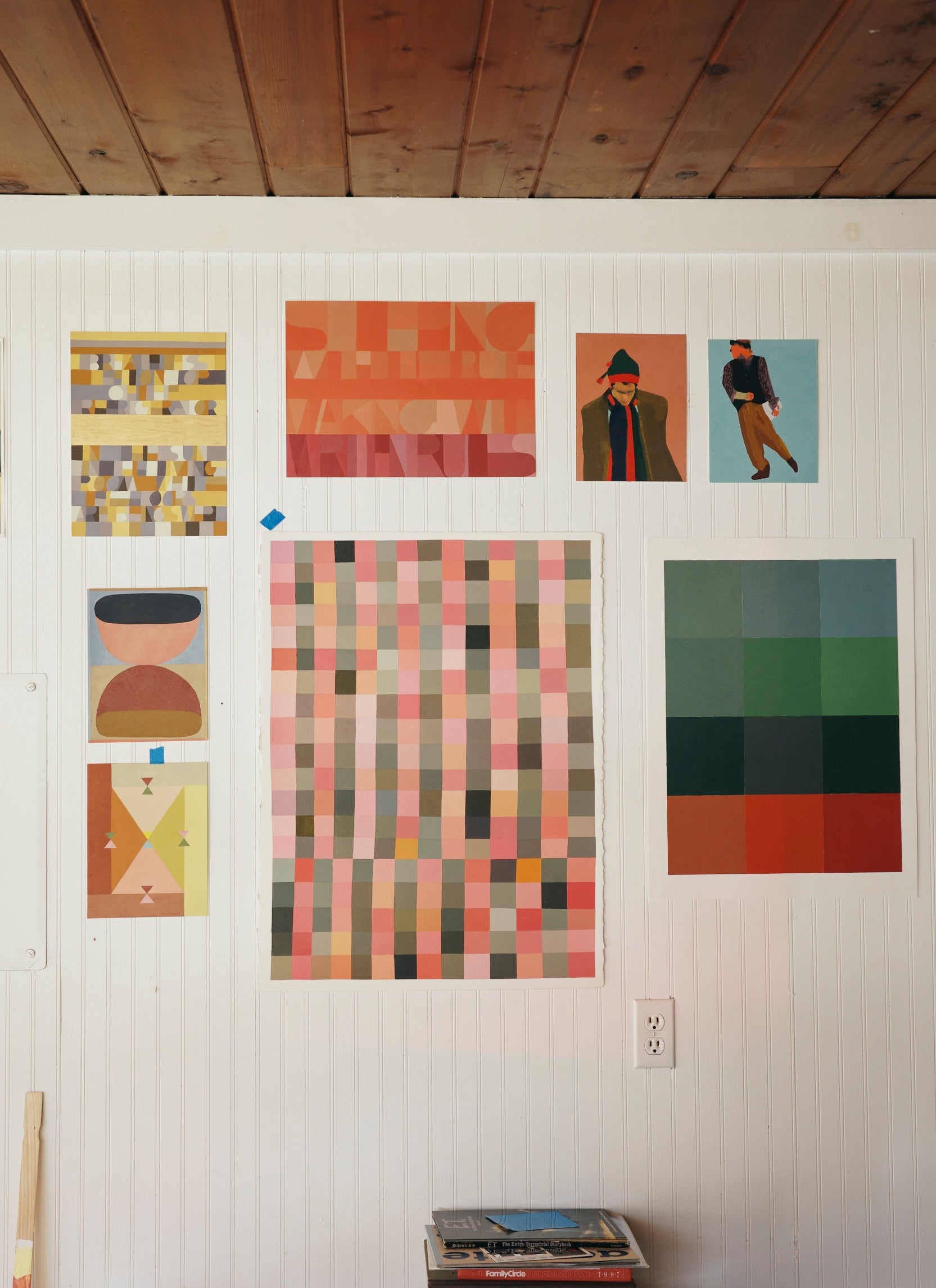 In ninth grade, I started keeping track of life interactions in my sketchbooks: conversations that took place over the dinner table, eavesdropping notes if I was out and about. I kept old receipts or to-do lists or wrappers from my great aunt’s candy bowl. It’s my way of holding onto the memory of something. My paintings are born from these observations.