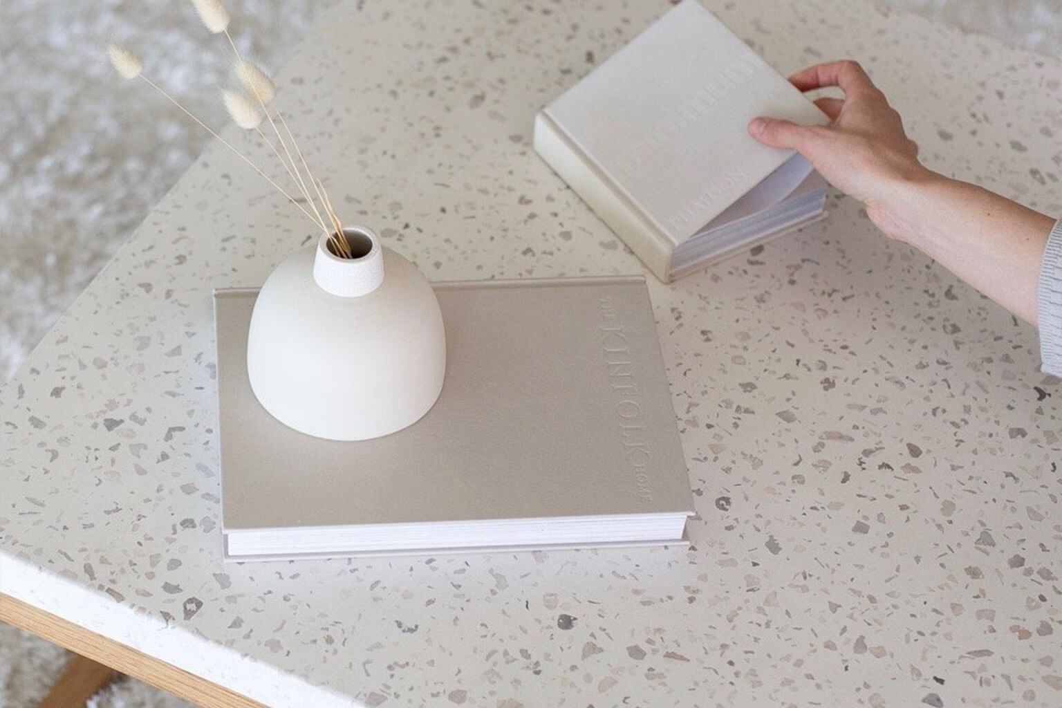 Terrazzo is composite cement, and each piece will dance with a unique pattern. Because the material is porous, be sure to use coasters to protect it from spills and heat or cold. To prevent staining, it’s important to wipe up spills with a clean, microfibre cloth as soon as possible.
