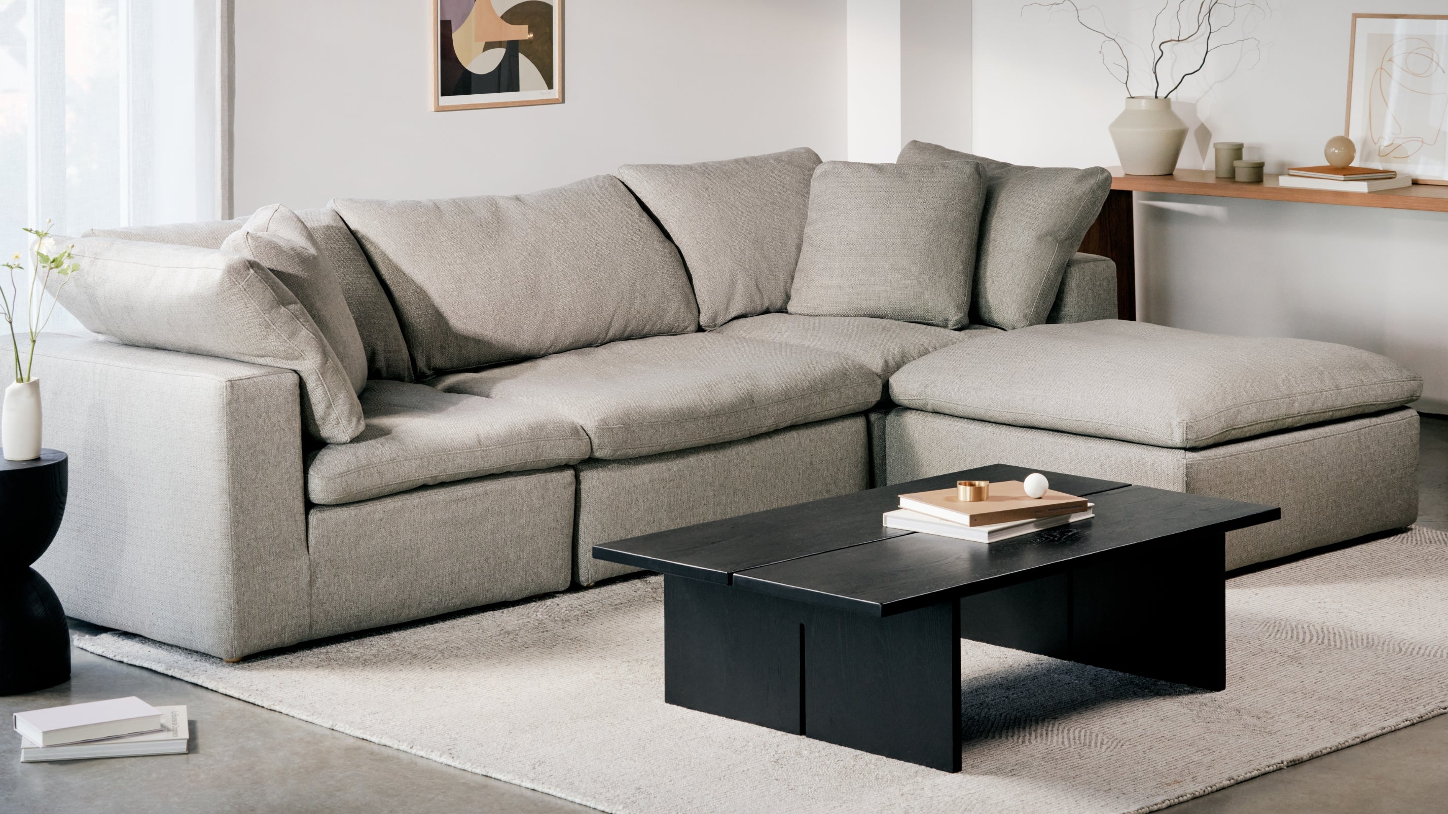 Movie Night™ 4-Piece Modular Sectional, Large, Cream Linen - Sundays Company